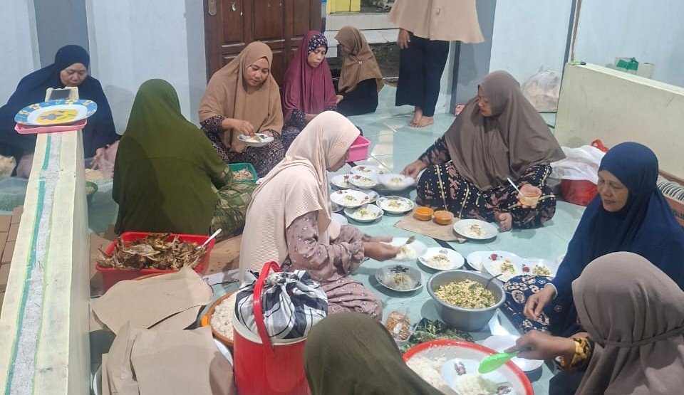 Di dapur dan area persiapan, tampak para ibu membagi tugas secara terstruktur. Ada yang memasak, menyiapkan bahan, mengemas sajian, hingga memastikan distribusi konsumsi berjalan lancar. Kebersamaan dan canda ringan di sela-sela aktivitas memperlihatkan kuatnya solidaritas di antara mereka.