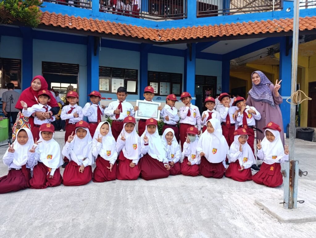 Potret kegembiraan anak kelas 1 usai mendapat piagam penghargaan kelas dermawan setelah upacara bendera