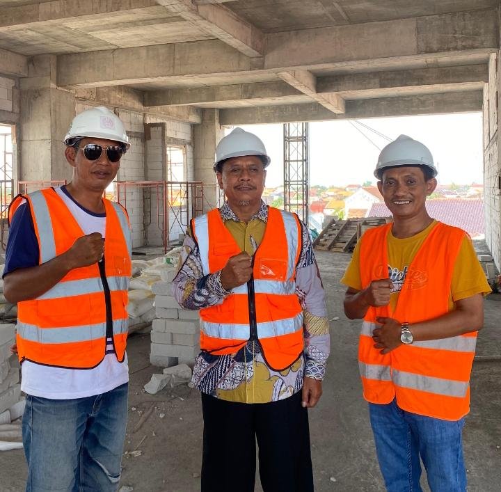 Mengenakan rompi safety dan helm keselamatan sesuai standar Kesehatan dan Keselamatan Kerja (K3), Shodikin menelusuri setiap bagian bangunan, mulai dari lantai basement yang direncanakan sebagai area parkir, hingga lantai atas yang akan difungsikan untuk pendaftaran pasien, radiologi, laboratorium, farmasi, poli rawat jalan, serta ruang perawatan.