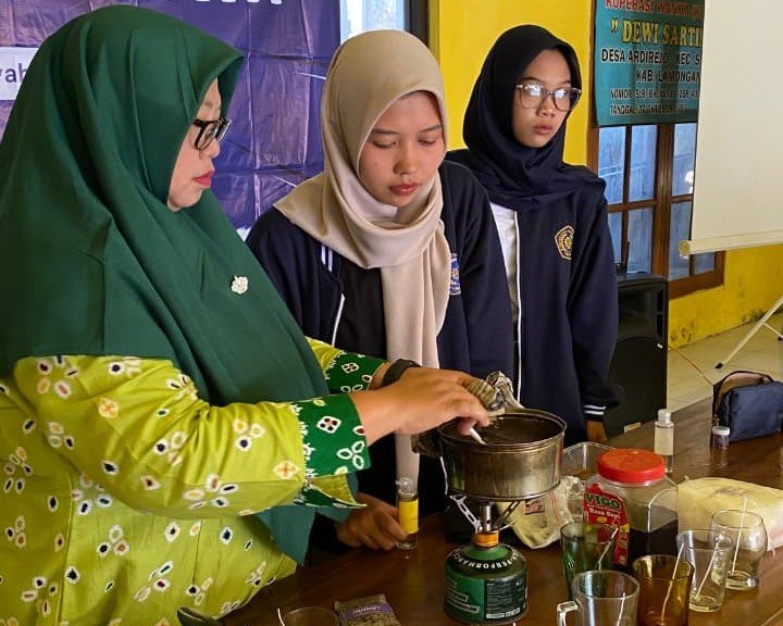 muhammadiyahbabat.com Kegiatan inovatif digelar oleh Kelompok KKN 05 Universitas Muhammadiyah Lamongan (UMLA) di Balai Desa Ardirejo, Kecamatan Sambeng, Lamongan, pada Selasa (26/8/2025). Mereka mengajak ibu-ibu kader desa untuk mengolah limbah minyak jelantah menjadi produk bernilai, yakni lilin aromaterapi dengan aroma lavender.