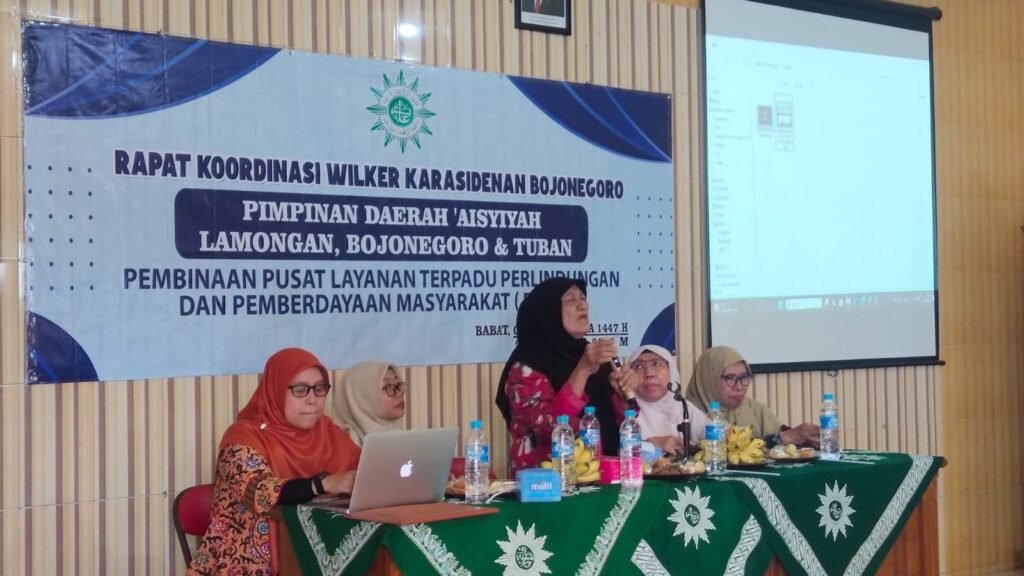 muhammadiyahbabat.com Rapat Koordinasi Wilayah Kerja Karasidenan Bojonegoro yang meliputi Pimpinan Daerah ‘Aisyiyah Lamongan, Bojonegoro, Tuban dan Pembinaan Pusat Layanan Terpadu Perlindungan dan Pemberdayaan Masyarakat ( PLTP2M ).