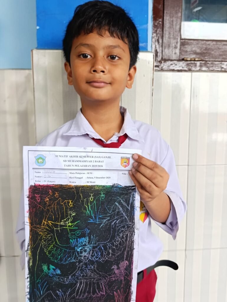 MuhammadiyahBabat.com – Hari terakhir pelaksanaan Sumatif Akhir Semester (SAS) Ganjil di SD Muhammadiyah 2 Babat pada Selasa, 9 Desember 2025, menjadi momentum yang tidak hanya penuh semangat belajar tetapi juga kreativitas seni. Siswa-siswi Kelas 4 mengikuti kegiatan Selasa Kreatif dengan mempraktikkan teknik grattage sebagai bagian dari penutup rangkaian SAS. Kegiatan ini dipandu secara langsung oleh wali kelas, Ustadzah Uswah, dan menjadi pengalaman yang menyenangkan sekaligus memberikan nilai edukatif bagi seluruh peserta didik.