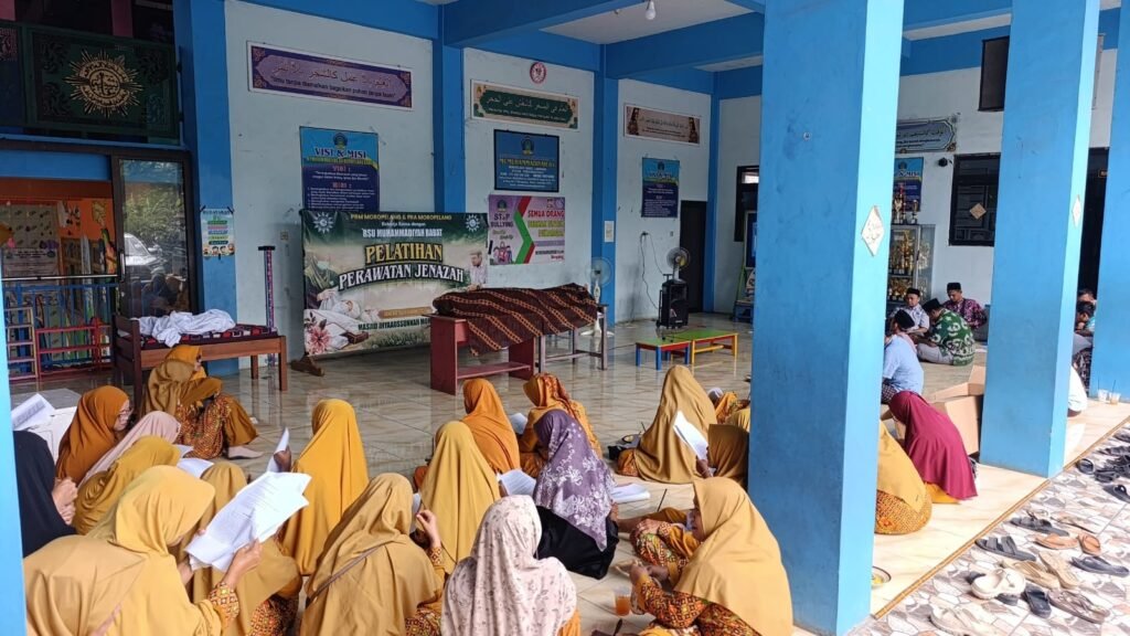 muhammadiyahbabat.com – Pimpinan Ranting Muhammadiyah (PRM) dan Pimpinan Ranting Aisyiyah (PRA) Moropelang, Babat, menggelar Pelatihan Pemulasaran Jenazah pada Jumat (17/1/2026). Kegiatan ini berlangsung di Komplek Perguruan Muhammadiyah Moropelang dan bekerja sama dengan Tim Bina Rohani RSU Muhammadiyah Babat (RSUMB).